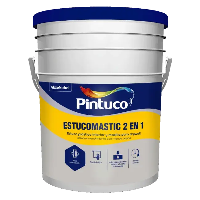 Masilla plástica lista para usar, con doble funcionalidad ya que puede usarse como estuco interior y como masilla para tratamiento de juntas en placas de yeso (drywall). De excelente adherencia, alto poder de relleno, fácil aplicación y lijado, proporcionando acabados blancos, lisos y tersos que maximizan el rendimiento y garantizan la adherencia de las pinturas de acabado. Recomendado para superficies revocadas y superficies lisas en sistemas constructivos industrializados, livianos y tradicionales. Para fijación de la cinta entre placas, capas de relleno y preacabado sobre placas de yeso (drywall) en ambientes interiores.