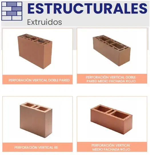 Encontrarás referencias como: Ladrillo Estructural de Perforación Vertical Doble Pared, Ladrillo Estructural de Perforación Vertical Doble Pared Medio Fachada Rojo, Ladrillo Estructural de Perforación Vertical, Ladrillo Estructural de Perforación Vertical Medio fachada Rojo RE.