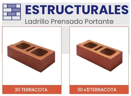 Encontrarás referencias como: Ladrillo portante 30x12 terracota, Ladrillo portante 30x12 medio terracota.
